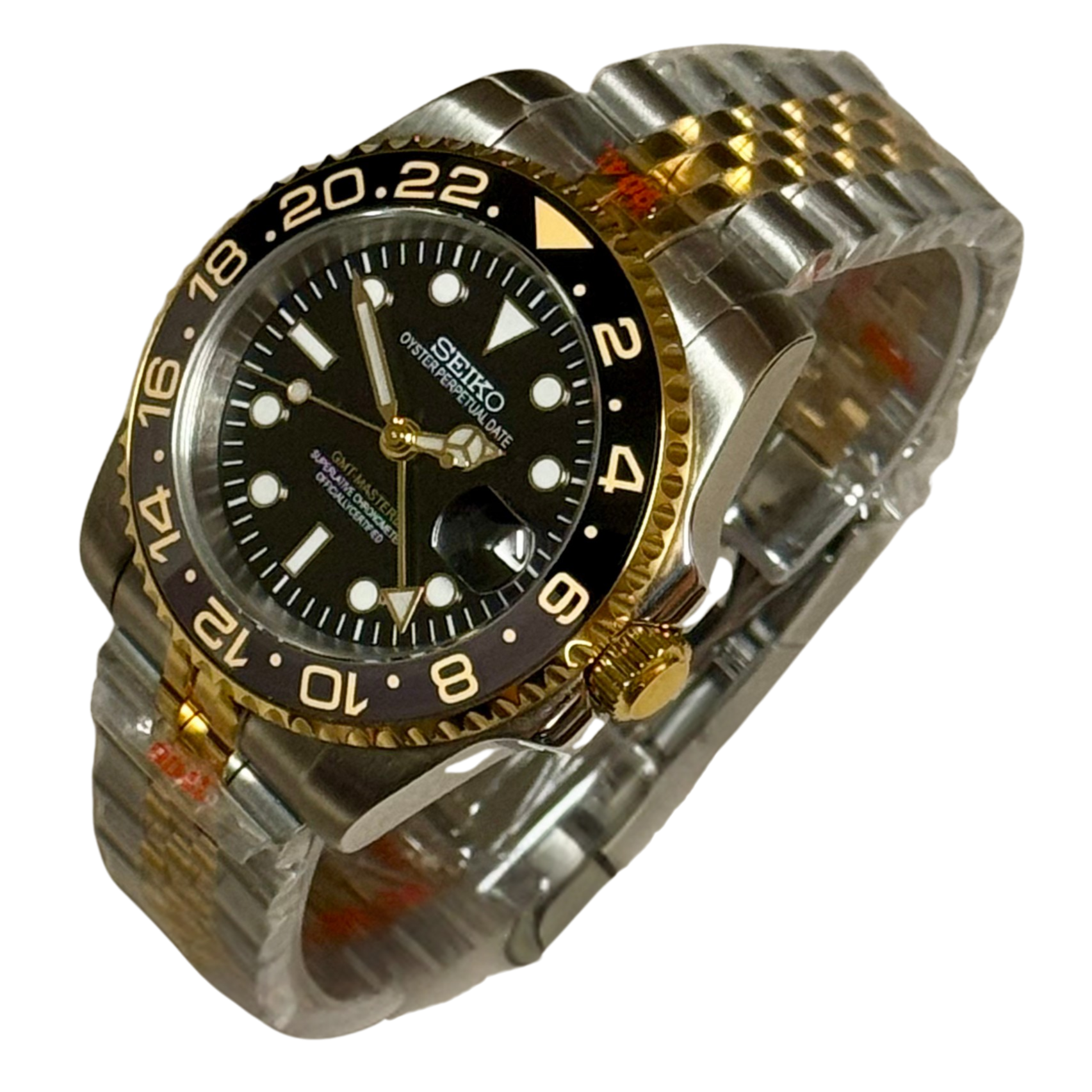 -Stainless Steel 40mm GMT style case with rotating bezel