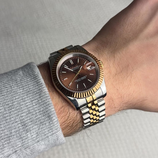 -Stunning Chocolate Dial with Rose Gold Accents